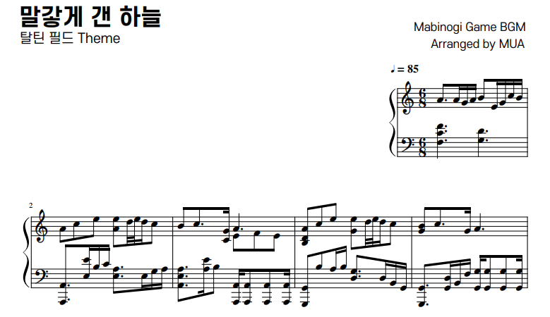 MABINOGI Taillteann Field BGM (A minor)|마비노기 "말갛게 갠 하늘" - 탈틴 필드 BGM(PDF Sheet Music + MP3)