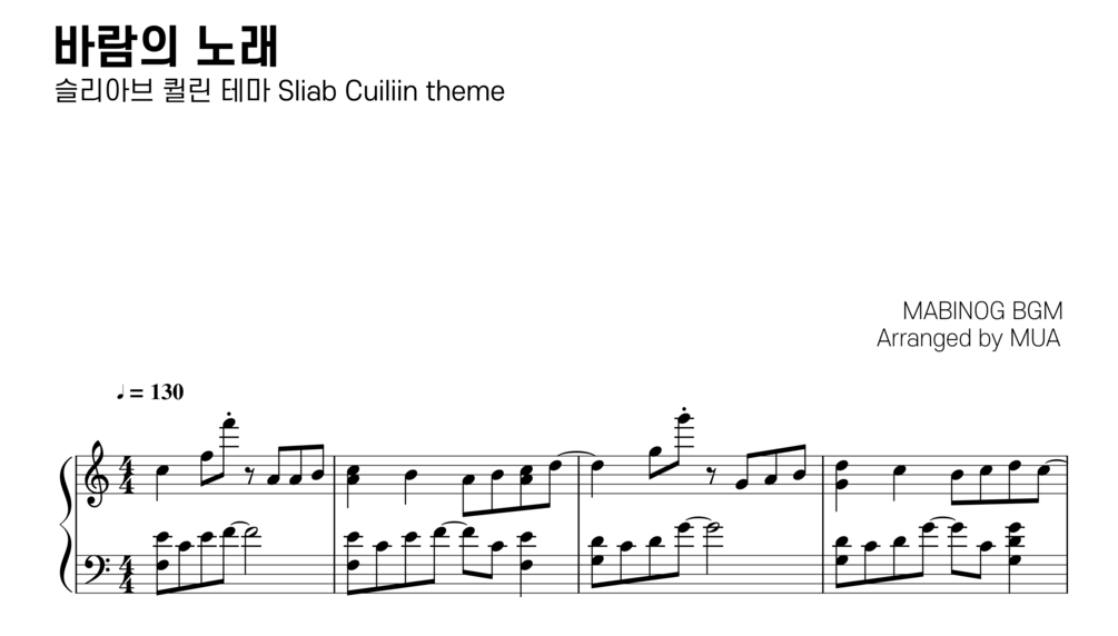 MABINOGI sliab cuiliin BGM (C Major)|마비노기 "바람의 노래" - 슬리아브 퀼린 테마, 티르코네일에서 탈틴 가는 길 (PDF Sheet Music + MP3)