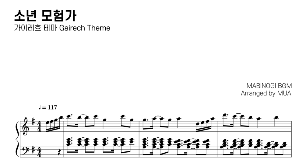 MABINOGI Gairech Hill BGM (C Major)|마비노기 "소년모험가" - 가이레흐 언덕 BGM (PDF Sheet Music + MP3)